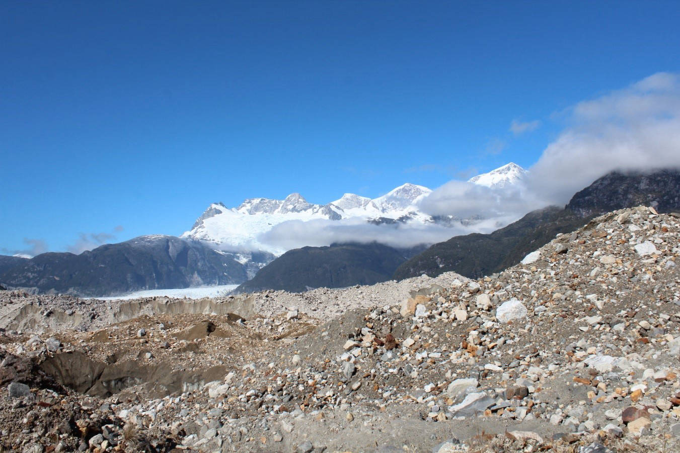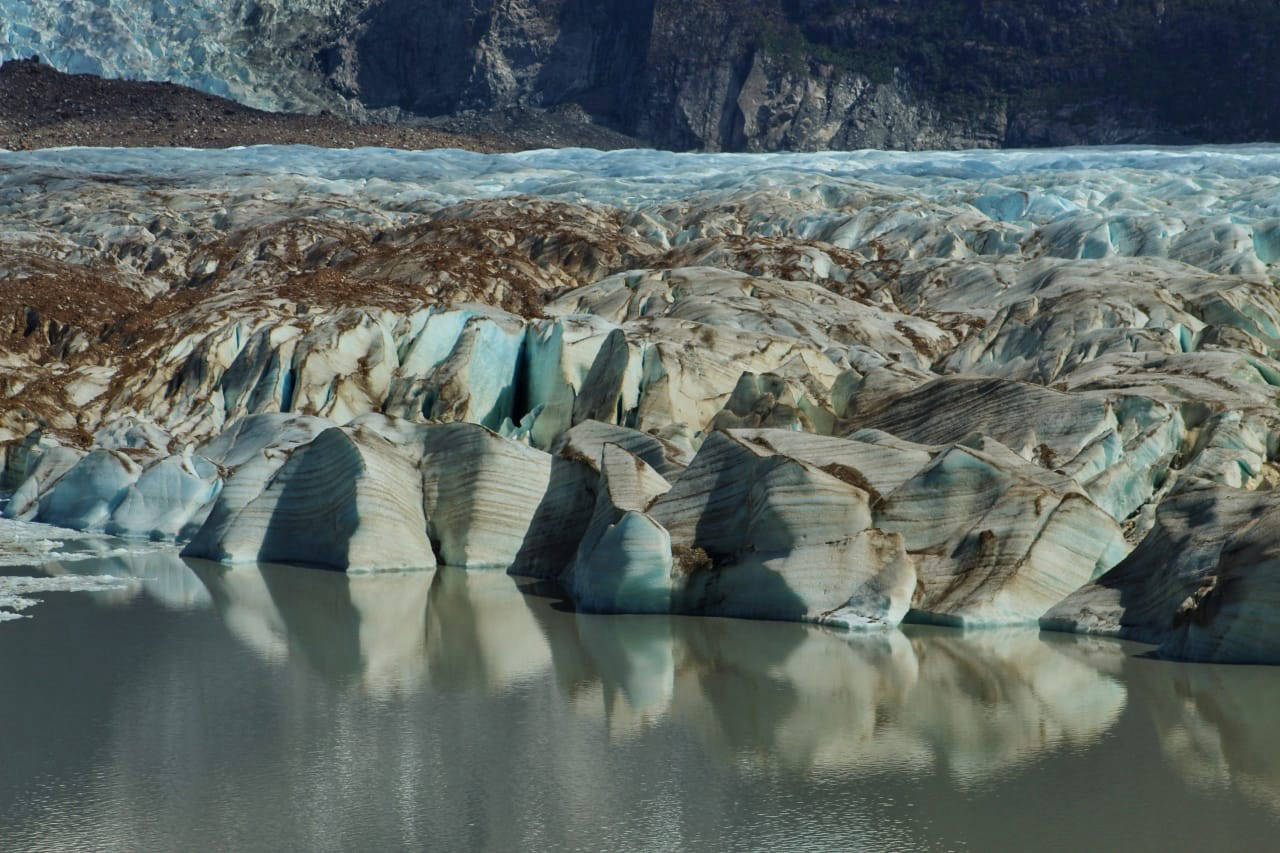 La gran masa de hielo milenario que desciende del monte San Valentín, la cumbre más alta de la Patagonia.
